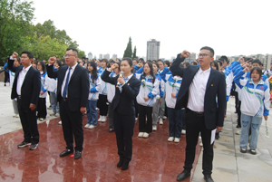 在团委副书记焦榆芡的带领下,同学们举起右手郑重宣誓,重温入团誓词,不忘初心,方能砥砺前行,先烈遗志不仅牢记心中,更要转化为行动!