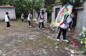 一朵朵鲜花,一簇簇花束,寄托着对先烈的哀思和敬仰。同学们走到烈士墓旁,带着虔诚,打扫卫生,表达对先烈的敬意。