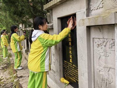 接下来,便是宣誓环节。全体同学整齐地举起右手,握紧拳头,以青春的名义庄严宣誓。“我们将继承烈士们的遗志,人民为先,祖国至上,发扬勇往直前,无坚不摧的革命精神,抛弃懒散与柔弱,告别散漫与消极……”誓言如洪钟般响亮,在陵园的上空久久回荡。每一个字,都饱含着同学们对先烈们的崇高敬意和无限追思;每一句话,都充满着力量,是同学们对未来的坚定承诺。在这一刻,同学们仿佛与先烈们的精神产生了强烈的共鸣,他们深刻地意识到,自己肩负着传承红色基因、实现中华民族伟大复兴的历史使命。