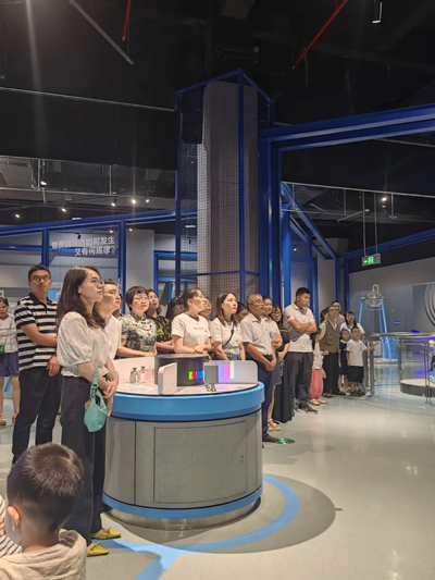 在科技馆专业讲解员的引导下,全体党员首先有序参观了“探索与发现”“科技与生活”“智慧与未来”等主题展区。讲解员生动形象地为大家介绍了智能机器人、VR虚拟体验、电磁大舞台等互动展品。通过深入浅出的讲解和现场演示,全体党员真切感受到了科技创新对社会发展的巨大推动作用,深刻认识到了科技在教育领域应用的重要性。