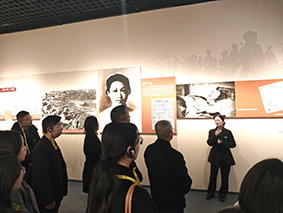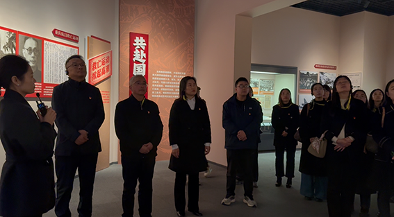 参观过程中,党员干部们驻足于印有“四川人民一致抗日”的瓷坛、川军“死”字旗等文物前,结合校史中“成达学子出川抗战”的记载,深刻体悟中国共产党在全民族抗战中的中流砥柱作用,以及巴蜀儿女“勇赴国难、共御外侮”的家国情怀。