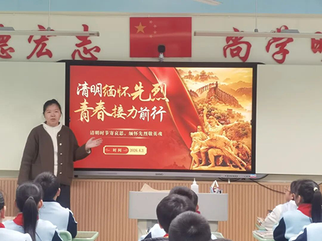 4月3日,各班级相继开展清明节祭英烈主题班会活动。通过播放红色影片、讲述革命先烈的英雄事迹和分享清明习俗等形式,带领学生重温那段峥嵘岁月,让学生们深刻了解英烈们为国家和民族的解放事业抛头颅、洒热血的崇高精神。班会课上,同学们积极发言,交流感悟,纷纷表示要铭记英烈功勋,努力学习科学文化知识,锤炼过硬本领,将来为祖国的发展贡献自己的力量。