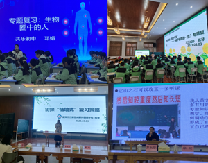 上午,首先由共乐初中邓娟老师执教了一堂《“授人以渔”——七下知识解题思维训练课例》的复习课,邓老师以“生物圈中的人”为专题,先让学生构建知识网络、补充各系统中的最重要器官和功能让小组充分地进行讨论和展示,巩固了基础知识,随后在“典题通关,直面中考”中教会了学生答题的四大步骤,并让学生学以致用,真正实现了教师的“授人以渔”。紧接着由三江新区成都外国语学校的陈琴老师执教《被子植物的一生》复习课,陈老师结合新课标采用了情景式复习方式,以向日葵的“前世今生”为情景,用向日葵为主题贯穿“被子植物的一生”这一单元,带领学生们在唯美的情境中愉悦地完成本单元的复习,陈老师言语亲和,富有感染力,新颖的复习方式让师生们收获满满,随后又以本节课为基础拓展作了《初探“情境式专题复习”策略》的专题讲座,从四个阶段讲述了复习过程中从困惑到尝试“情境式专题复习”到最后“蓦然回首”豁然开朗的探索过程,其中请老师们以《植物的三大生理作用》、《人体重要生命活动》两个专题创设情景的互动环节时,将老师们的思维激发到了高潮,老师们积极发言发表自己的设计观念,让更多老师们为接下来采用情景式复习的方式有了更多的思考。