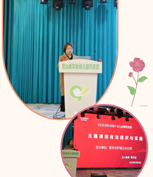 培训中,周老师围绕主题课程背景、课程理念、课程实施三个方面,结合课程中的真实案例,深入浅出的向老师们讲解了主题课程在实际教学中的运用,让大家进一步理解了以儿童立场、生活态度、整体视野与过程取向为目标的课程理念。