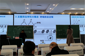 接着,来自高县柳湖初级中学校的中学生物正高级教师、全国优秀教师周辅蓉作了《新课标下的大单元教学设计》讲座。周老师在讲座前先从情感上以“工作、优秀”为话题鼓励老师们要提升自我、从“标准 课堂 质量”提示老师们要多读政策文件,之后详细对“大单元教学设计”实践进行了讲解。周老师从“为什么要进行大单元教学?”“怎样进行大单元教学设计?”两大版块展开分析,从“什么是单元?”“怎样划分单元?”“大单元教学的基本特征?”“大单元教学设计的步骤”四个方面给老师们进行了深入的指导。培训中,周老师注重教学互动,在“主题突出学科大概念”的环节,让全体老师动手画“呼吸的全过程”示意图,现场抽选教师上台,亲身示范同台作图,展示了《人体的呼吸》单元导航图,给教师们的单元设计作了具体指导。