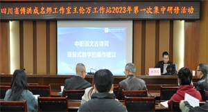 在活动的第二环节,工作室领衔人傅洪成老师为与会教师做了题为《中职语文古诗词项目式教学的操作建议》的专题讲座。傅老师从中职语文项目式教学的内涵讲起,充分阐释了中职语文项目式教学的重大意义,并详细讲解了古诗词项目式教学操作项目举要。不管是古典诗词情景朗诵会,还是古典诗词鉴赏集,从目标任务的设计,到质量评价的拟定,再到具体的操作建议,都可圈可点,令人拍案。最后,傅老师还以《登高》、《声声慢》为例,生动呈现了古诗词项目式教学的两个教学案例,任务设计明确恰当,活动环节具体可控,环环紧扣,步步生花,真正演绎了项目式教学设计的精髓所在。傅老师真心传道,倾囊相授;与会教师沉浸其中,获益匪浅:这就是头雁引领的真实体现,这就是源头活水的孕育场景!