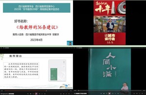 书有千秋各其美。汪芳工作站郭梦洁老师推荐的《不跪着教书》回荡着“言他人之所不敢言”的勇气;曾令玫工作站邬家洪老师推荐的《给教师的36条建议》展示了教师成长的多条路径;李静工作站阳建琼老师、张峡工作站刘盈老师在各自解读的基础上介绍经典著作《平凡的世界》,在平凡中孕育希望;明安丽工作站明安丽老师推荐的《呼兰河传》再现萧红视角的嘲讽与批判;李勇生工作站的雷丹蕊老师介绍《活着》——被苦难蹂躏的生命,选择真实的活着;隆红梅工作站罗静莉老师、陈晓英工作站肖云老师《苏东坡传》从不同角度展示一代文豪的“诗意与浪漫”的一生;易娜工作站杨嫣老师推荐的《当呼吸化为空气》以医者视角诠释“生命、医学和医学伦理”;王桃工作站的王桃老师推荐《做更专业的教育》提出“教育的终极目标,是培养幸福的人”;童玲老师推荐的《黑色棉花田》可以帮助孩子塑造一个正直勇敢而又不莽撞的三观;王伦万工作站李秋梅老师推荐《曾国藩传》客观评价了晚清四大名臣之一曾国藩传奇的一生,通过一人,窥一个时代;向此梁工作站蒲育芳推荐的《文化苦旅》倡导大家一起读书,一起行路;陈晓英工作站赵红玉老师的视频《人间草木》以草木光阴,道出人间五味;郑秀辉工作站的周春丽老师《写给年轻人的中国智慧》从“精进”“原则”“得到”“个性”为切入,阐释了当今人们的学习、工作、交际、修养、情感等问题;邓丽霞工作站兰家美老师推荐的《人间小满》引领令人人们如何探视自己的内心,去热爱生活;宋江彬工作站的米肖佳老师的视频《万物有时》旨在号召大家热爱学习、热爱生活,拥有一颗赤子之心。