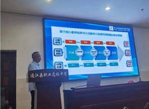 自贡职业技术学校邓丽霞老师作《将学生引入“深度学习”的“深度教学”——基于核心素养背景下项目式教学的一些思考》专题讲座。邓老师分享了对“深度教学”理解,并提出要遵循“五个注重”:注重价值引领,注重问题导向,注重思维培养,注重学科整合, 注重自主探究。