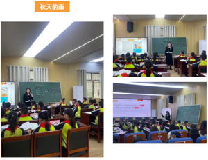 第二堂课是由新店小学卢萍老师执教的《秋天的雨》。卢老师富有文采的柔声细语,拉近了师生间的距离。在课堂上,她创设了一系列活动,对学生进行了引领、点拨、启发,使得课堂如行云流水,气脉贯通。