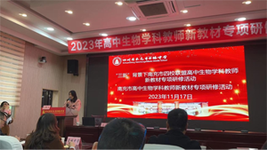 为了进一步适应普通高中课程改革要求,引导高中生物教师深入研究新教材课程内容,更新理念、变革教学方法,提升教师教育水平。11月17日,四川省“三新”背景下南充市九校高中生物学科教师新教材专项研修活动在四川省南充市白塔中学举行,阆中中学、宏德中学、西充中学、宏德中学、晋城中学、高坪南高、龙门中学、南充十一中、白塔中学九校生物学科高一、高二教师参加了此次活动。