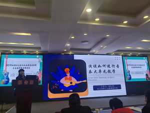 此次研讨会分为三个阶段:一、师生才艺展示 二、省市优秀课例分享 三、专题讲座、名师交流等活动。首先展示的是来自兴文县香山中学民族班的同学带来的苗族器乐合奏,学生们表现力丰富,演奏技巧熟练,器乐类型丰富多彩,他们充满激情的表演让观摩的老师们也跃跃欲试,紧接着是来自兴文二中赵星月和城西学校的蒋文老师带来的笛子、大提琴小合奏《敕勒歌》,赵老师优美的笛声一下子就把听众带到了广阔的大草原,再配上蒋老师浑厚的大提琴声,让老师们听的如痴如醉,久久还在回味。师生才艺展示过后是兴文县城西学校李敬老师、兴文县共乐中心校陈尚娅老师和来自江安县职业技术学校杨云飞老师、江安县底蓬中学校周贤强老师带来的优秀课例分享,四个老师从不同的角度、不同的构思、不同的操作过程等方面跟老师们做了详细的分析和演练,使在座的老师们对今后的课堂教学有了更深的认识和思考。