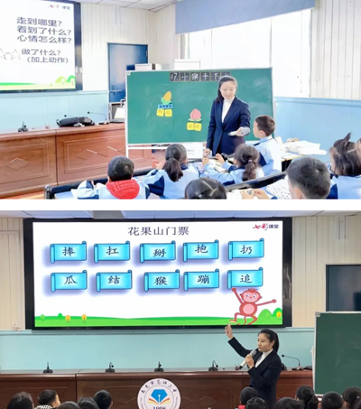 本次教研活动的语文学科是由李丹老师执教的一年级下册《小猴子下山》一课。这是一年级下册第七单元的最后一篇课文,趣味浓厚,富有童话气息。李老师首先通过幽默风趣的语言创设了小猴子下山寻找水果的情景,以此为背景让孩子们争取游览花果山的门票,借以巩固上节课所学生字,寓教于乐,生动活泼。