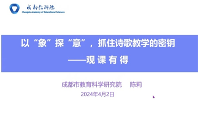 接着,成都市教科院研究员,中学高级教师,成都市学科带头人,四川省职业教育语文教研中心组成员陈莉进行了《以“象”探“意”,抓住诗歌情感的密钥》专题讲座,来点评了本节课。