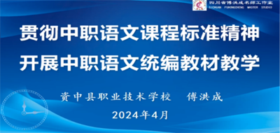 2024年4月2日下午14:30,由四川省教育科学研究院主办,成都铁路卫生学校、成都工贸职业技术学院、资中县职业技术学校承办,四川省傅洪成名师工作室协办的“中职语文优质课展评——四川省职业教育网络教研活动”通过“四川网络教研平台”成功开展。
