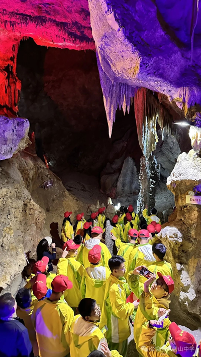 第二天清晨,同学们参观大象洞。洞内,石钟乳、石笋、石柱等溶洞景观形态各异、气象万千。同学们在此欣赏大自然的鬼斧神工,探索大自然的无穷奥秘。