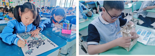科创课、美术课上,孩子们想象丰富,动手操作,课程提升了学生的审美能力,拓展了学生的思维能力。