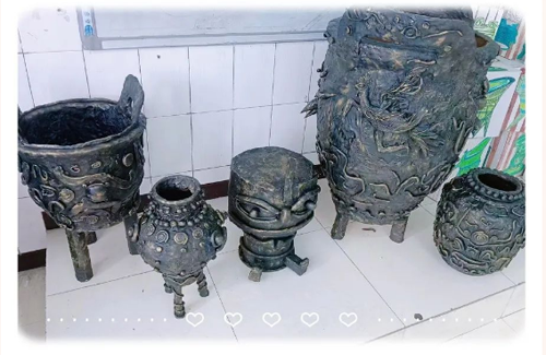 学校成立的“青铜器文化工作坊”颇具特色,同学们学习青铜器文化知识,老师带领学生一起动手画画,做手工,提升同学们的文化自信和民族自豪感。