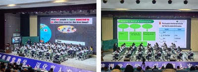 大邑中学九年级备课组长李明珍老师、成都市天府新区元音学校夏佳华老师就九年级《Unit10 You are supposed to shake hands.》单元复习课同课异构。两位老师教学思路清晰,既重视学生的语言知识过手,又注重学科素养培养,引导学生将知识结构化,让学生通过阅读新语篇将所学内化应用,最终迁移到实际生活中来。课堂环环相扣,注重落实新课标,培养英语学科素养。