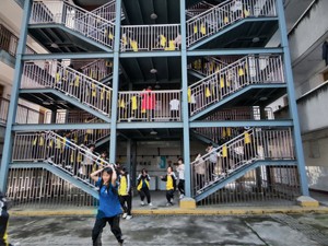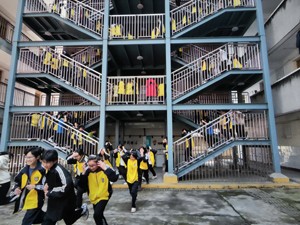 3月14日中午13时40分,发令员发出指令(口哨声),公寓管理人员听到口哨声后迅速到本楼层组织住校生进行疏散,疏散过程中同学们都能够做到有序、迅速、不拥挤、不推搡,仅用一分半钟时间就到达了操场指定地点(男生集中到楼下安全区域),随即各宿舍室长迅速清点人数并上报。
