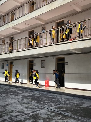 正式演练前,学校制定了详细的演练活动方案,每位负责教师及公寓管理人员都明确了自己的职责、岗位。各班主任也利用班会课对学生进行预防应急事件专题教育,明确演练活动的重要性。