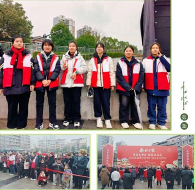 初2023级20班喻琪等同学成为了“春到万家——百姓大舞台,新春天天乐”2025年高坪区春节广场文艺大拜年活动的志愿者。她们负责场地布置工作,悬挂横幅,调试音响设备,疏导现场秩序,清理活动垃圾,为活动的顺利举行贡献了微薄的力量。