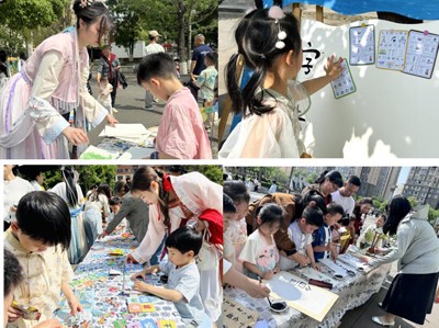 接下来的春日亲子诗会游戏将活动推向了高潮。古诗拼图、书签制作、古诗对吟、漆扇、识字打卡等八大主题游戏区,融合“识字、艺术、古诗、非遗”于一体,家长和孩子们手牵手穿梭在各个打卡点之间,共同参与游戏,在轻松愉快的氛围中增进了亲子关系、增加了对古诗独特魅力的喜爱、加深了对阅读的理解。