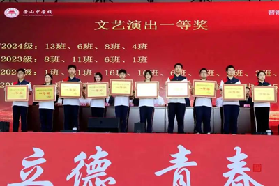 营山中学高二(1)班和高二(2)班学子以炽热初心编织三重华章。轻吟《稻香》忆童年萤火,暖嗓唤醒阡陌芬芳;清啸《我乘着风飞过来》携少年意气贯云霄,翅尖掠过山河浩荡;唱踏浪之声共谱一页华章,《营山中学校歌》铿锵如金石,将百年薪火铸入血脉铿锵。贯虹之势破云霄,将少年志气熔铸成激情倾泻的巨响。三声共鸣,织就青春经纬,听见理想拔节的力量。以歌为舟,在新征程的号角中,载着坚定的理想、青春的风、母校的灯——向璀璨未来启航。(四川省营山中学)