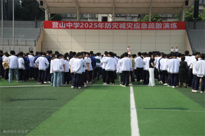 为增强师生防灾减灾意识,提高应急避险和自救互救能力,四川省营山中学校于2025年5月16日上午组织高一、初一师生开展“人人讲安全、个个会应急——排查身边灾害隐患”防灾减灾应急疏散演练。本次演练以实战化标准进行,覆盖莲心楼、致远楼、静嘉楼等区域,全校千余名师生参与。