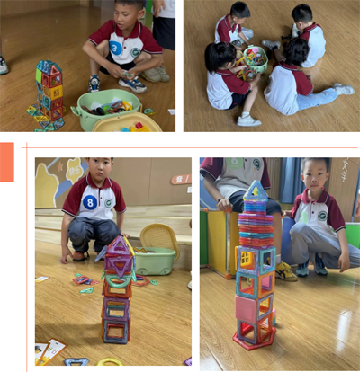 小小建筑师们全神贯注,各种样式的房子在他们的巧手下诞生!磁力片的"咔嗒"声,仿佛奏响了孩子们心中最美的科学乐章。看着他们专注的眼神和灿烂的笑容,未来的工程师或许就在其中诞生!
