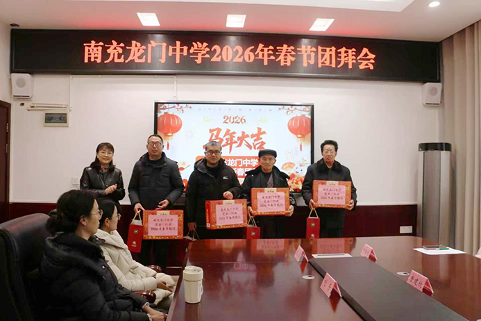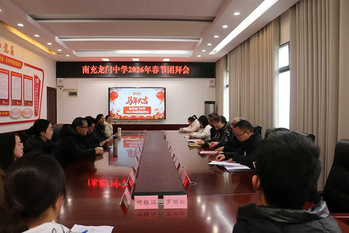 为凝聚发展合力,共庆新春佳节,近日,南充龙门中学举行了2026年春节团拜会。学校班子成员、退休教职工代表、教师代表、退役军人及军属代表、困难教职工代表、新进教职工代表与优秀学生代表齐聚一堂,共话过往成绩,共绘新年蓝图。
