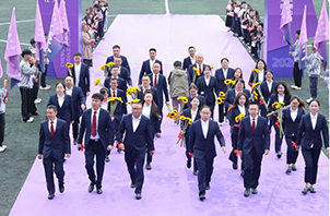 入场礼毕,国旗、校旗先后升起,全体师生肃立致敬,目光灼灼望向飘扬的旗帜,爱国情怀与逐梦热忱在此刻同频共振。