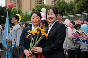 育人组老师手持金黄向日葵,行到12个班主任面前。这不是普通赠花,而是递上一整个春天的美好预言——一举夺魁,葵向青云。