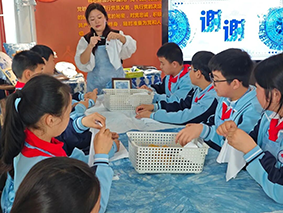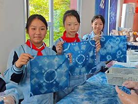 随着一方方蓝白相间、花纹各异的作品陆续呈现,古老的扎染工艺在孩子们的巧手下焕发新生。每一块独一无二的花纹,都是孩子们创意与耐心的结晶,也让大家真切感受到了古人“无化学染料”的生活智慧。