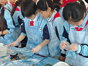 该校学生曾乔馨兴奋地说:“扎染太神奇了,我用自己的方法绑了手帕,染出来之后每一块花纹都是惊喜,像开盲盒一样。老师告诉我们,这是古人没有化学染料时发明的智慧,我觉得我们自己的传统文化特别酷!”