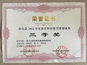 2022再获佳绩,营山县实验幼儿园一份耕耘,一份收获;一份成绩,一份动力;在这硕果累累的季节里,营山县实验幼儿园的老师,用辛勤的汗水,换来了收获的喜悦。