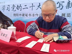 书法是中华文化的国粹,承载着中国人文化传承的基因。2022年11月9日,由德阳市书法家协会主办,中江县城西中学承办的“学习党的二十大·书写新时代”德阳市硬笔书法作品展在中江县城市中学举行。德阳市书法家协会常务副主席李嗣德,德阳市书法家协会副主席吴大亮,德阳市书法家协会副秘书长陈荣通、吴隽、顾小勇,中江县教育科学研究所副所长谭中攀等一行十余人莅临展览现场,并指导该校学生现场书法比赛。