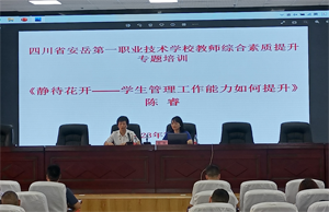 专题培训会上,来自四川省职业教育与成人教育学会秘书处的德育专家,曾历任四川交通运输职业学校信息工程系党支部副书记、基础部副主任、团委书记的陈睿老师,为大家带来了《不问西东,静待花开——以赛促教,全面提升学生管理综合能力》的专题讲座。来自成都市现代职业技术学校的信息中心主任黄渝川老师,为大家做了《教学资源库开发及应用》的经验分享。