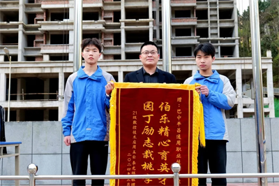 阳春三月桃李芬芳,通用职校无限春光。3月25日,巴中平昌通用职校2021级数控专业学生王云、李龙祥2位同学将绣有“伯乐精心育英才 园丁励志栽桃李” 的锦旗送到学校党支部书记、校长姜波手中,感谢学校和老师对他们的精心培养和无私付出,让他们实现技能成才。
