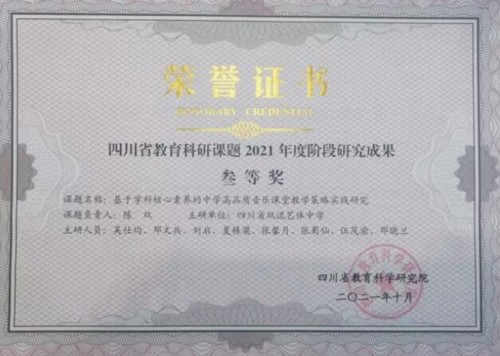 他功底扎实,注重总结,善于反思,一步一个脚印去练就一身“舞”艺,不断提高自己的综合素养。他撰写的多篇论文发表于国家级学术期刊;多次到攀枝花、南充、西昌、绵阳、宜宾等地进行学术交流,进行课例展示和专题讲座分享;主研的省市区三级课题成效显著。