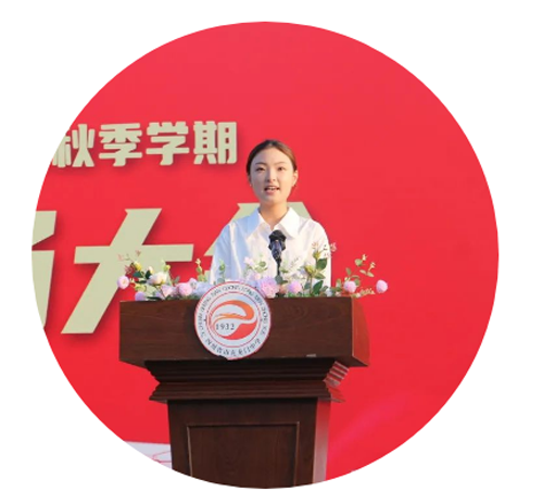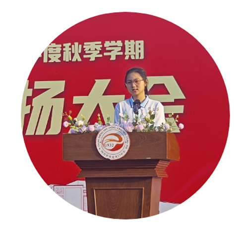 高一1班张琳同学代表学生发言,她勾画了“宝剑锋从磨砺出,梅花香自苦寒来“的美好愿景,与龙中学子共勉,激励同学们要不怕困难,迎难而上,勇攀高峰,去创造属于龙中人的辉煌。