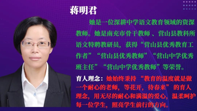 营山中学初中部承载梦想,再续华章,打造初高中一体化教育模式,着眼高考,立足当下,为学生长远发展赋能。营山中学全体老师愿做孩子们翅膀下的风,让孩子们乘风翱翔。