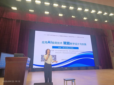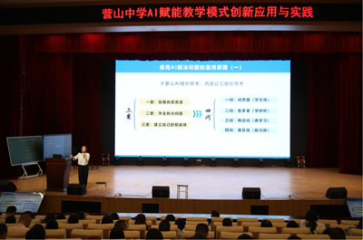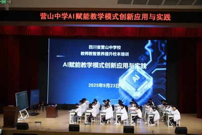 2025年9月23日晚,一场聚焦“AI赋能教学模式创新应用与实践”的专题活动在营山中学科教楼报告厅成功举办。全校教师及营山县曾振宇名校长工作室成员及成员学校骨干教师300余人参加了培训。