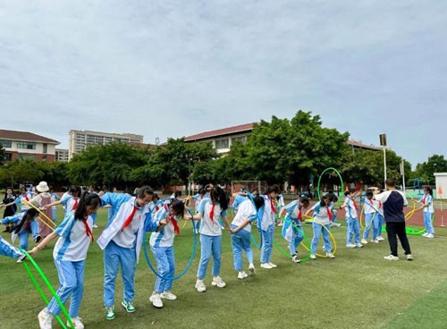 这是一场充满趣味和挑战的游园会。学生们以班级为单位参与集体赛,随后分为七个小组参加个人赛,通过背夹球、钻圈接力、你有几条腿等趣味游戏,增进同学间的友谊,促进身体健康。