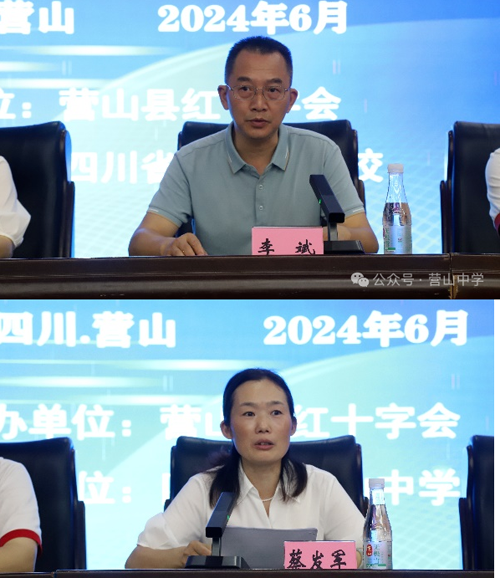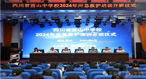 为有效促进师生对基本急救知识和技能的掌握,提高师生在突发事件中的应急反应能力和自救互救水平,营山县红十字会、四川省营山中学校于6月15日在营山中学天伟会堂组织开展2024年应急救护公益培训,营山县红十字会常务副会长蔡发军、营山中学党委副书记、校长李斌、营山县博爱志愿者协会会长罗健英、营山县博爱志愿者协会秘书长胥强、主讲教师、助教团队及高三年级师生参加了此次培训。开班仪式由营山中学安保处主任任小波主持。
