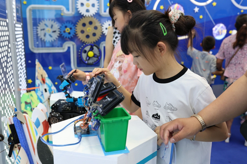 三是科技互动体验区。这是由天宫一号、神州发展史、火箭发射、着陆月球、八大行星组合而成的。它是一个可操作、可视听的科技互动体验墙,让孩子们近距离感受宇宙的奥秘,体验太空探索的乐趣。
