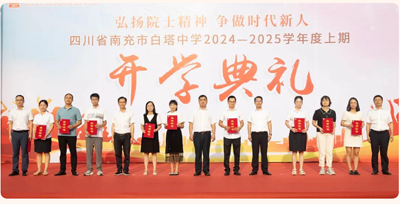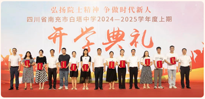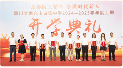 党委副书记何松涛宣读了学校获得市、区表扬的先进个人名单及《四川省南充市白塔中学关于表扬优秀教师、优秀班主任、优秀教研组长、优秀备课组长、教育科研先进个人、教坛新秀、优秀教育工作者的通知》后,与会领导为受表扬的同志颁发了荣誉证书。