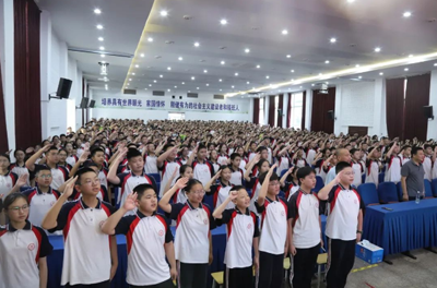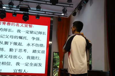 程俊豪同学带领全体同学宣誓,同学们高举的拳头,不仅是青春的誓言,更是将这份誓言化为行动的坚定力量。同学们共同承诺,将不负韶华,不负自己,以实际行动让青春熠熠生辉!