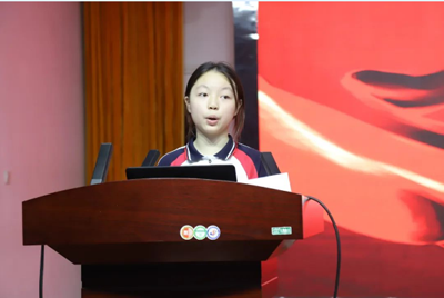 学生代表范馨予同学发言。她回顾了过去一年的成长收获,感恩老师们的温情陪伴,分享了自己的学习方法。她鼓励同学们要敢于挑战,坚持梦想,勇于追梦,团结共进。