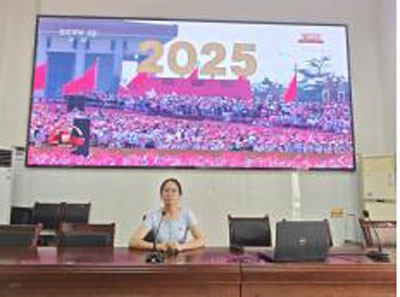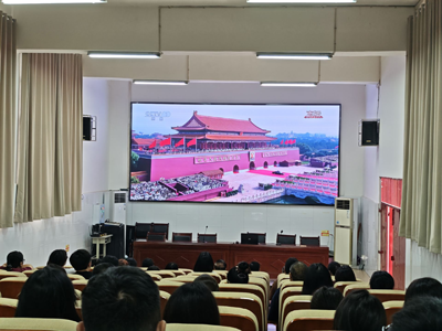 上午9时,活动正式开始。在70分钟的阅兵仪式中,师生们全程肃穆,凝神屏息。当礼炮轰鸣、国旗升起,官兵高呼强军口号时,会场响起热烈掌声;当徒步方队迈着铿锵步伐通过天安门广场,展现“一老一新”武装力量体系时,师生们为军队的威武雄壮而自豪;当装备方队展示500余台国产现役装备,包括高超音速武器、新型隐身战机等“大国重器”时,科技楼阶梯会议室和教室中惊叹连连。联合军乐团演奏的《松花江上》《保卫黄河》等抗战经典乐曲,将师生带回烽火岁月,而新时代强军乐曲则激荡着大家对未来的憧憬。