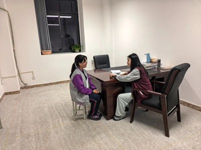 调研伊始,唐雪莲、王天美老师便与壹米滴答珍珠班的同学们展开了 “一对一” 深度交流。没有生硬的提问,只有亲切的倾听 —— 老师们坐在学生身边,像朋友般询问他们当下的学习情况、生活困扰,耐心倾听每一个孩子关于未来的畅想。